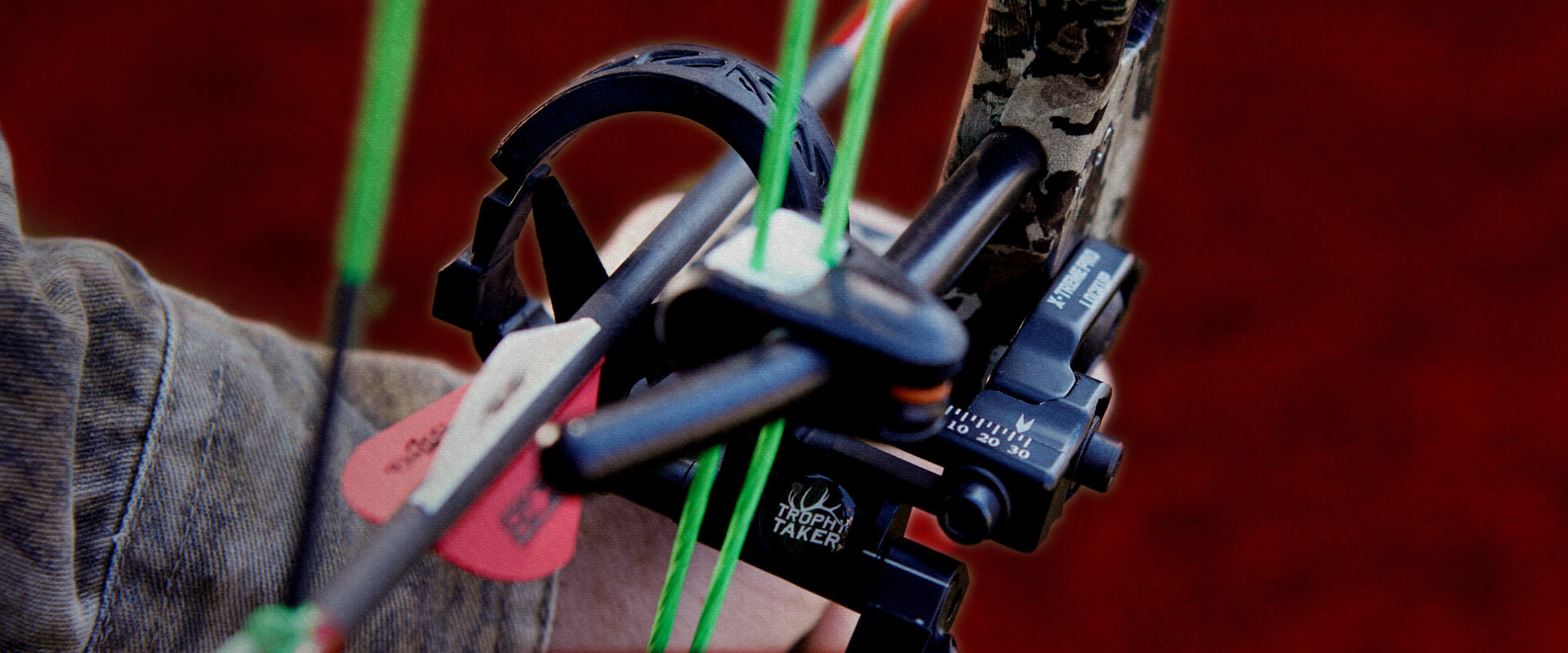 Precision machined aluminum frame & mount with thumb-operated grippers for silent arrow removal. Holds 5 arrows.